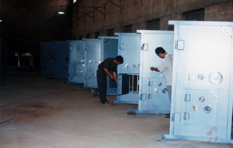 武邑縣龍牌柜業(yè)有限公司原名“武邑縣金屬櫥柜廠”(黑龍港牌),由于增加注冊資金改名為“河北省龍牌保險(xiǎn)柜總廠”,于2003年企業(yè)升級為"武邑縣龍牌柜業(yè)有限公司,我廠已有三十年的生產(chǎn)歷史,是專業(yè)生產(chǎn)不銹鋼金庫門、移動(dòng)金庫的廠家。廠區(qū)占地面積42154平方米,建筑面積16861平方面,設(shè)備齊全,年產(chǎn)量可達(dá)3萬臺(tái)(套)。